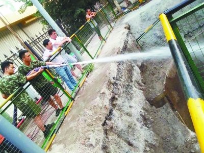 消防隊配合沖洗井內 消防隊配合沖洗井內 CCTV檢測管道內情況 作為我市重點民生工程,近日,由中鐵上海工程局集團有限公司負責的城東污水處理廠三期主干管銀龍路段清...