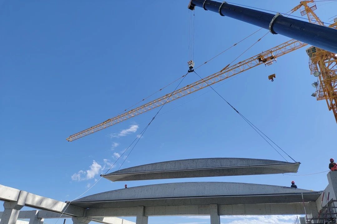 9月25日,肇東市城市供水工程項目凈水間預應力屋面拱板起重吊裝完成。...