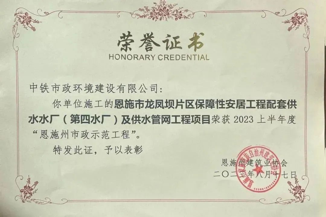 8月17日,公司承建的恩施市龍鳳壩片區(qū)保障性安居工程配套供水水廠(第四水廠)及供水管網工程項目榮獲 2023 上半年度“恩施州市政示范工程”。...