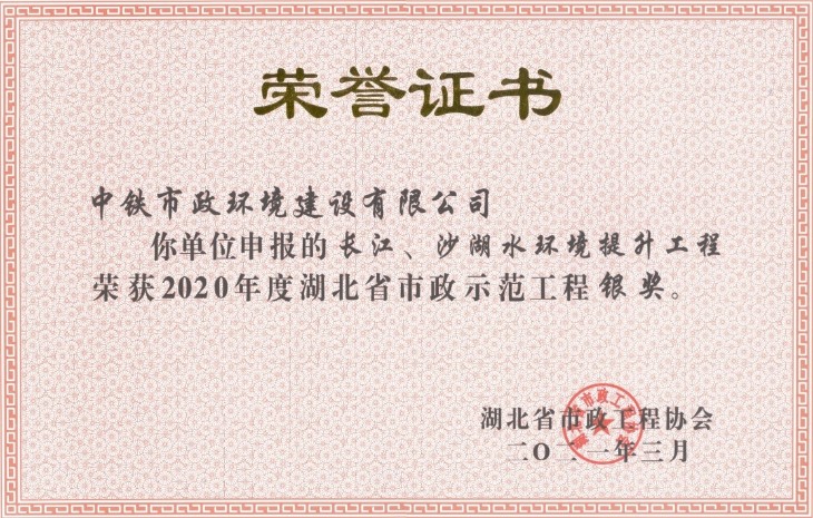 近日,2020年湖北省市政示范工程評選結(jié)果公布,公司長江、沙湖水環(huán)境提升工程項目喜獲湖北省市政示范工程銀獎。...
