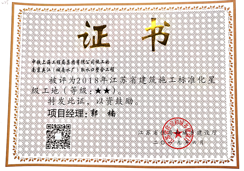 近日,南京夾江(城南水廠)取水口整合工程榮獲“江蘇省建筑施工標(biāo)準(zhǔn)化星級工地”榮譽稱號,這是該項目繼榮獲“南京市建筑施工市級標(biāo)準(zhǔn)化文明示范工地”后又一榮譽。...