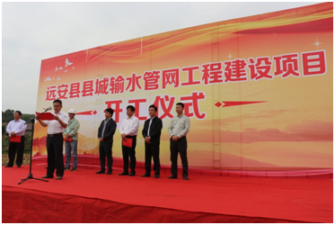 9月29日上午,公司中標(biāo)的宜昌市遠(yuǎn)安縣縣城輸水管網(wǎng)工程在管線的起點(diǎn)舉行了開工儀式。遠(yuǎn)安縣縣委副書記、縣長蘇海濤,縣委常委、副書記張俊,縣委常委、常務(wù)副縣長肖鵬飛,縣政協(xié)副主席、工程建設(shè)副指揮長梅昌許,公司總經(jīng)理鄧永馳,以及遠(yuǎn)安縣縣直相關(guān)單位,工程監(jiān)理、工程設(shè)計(jì)等...