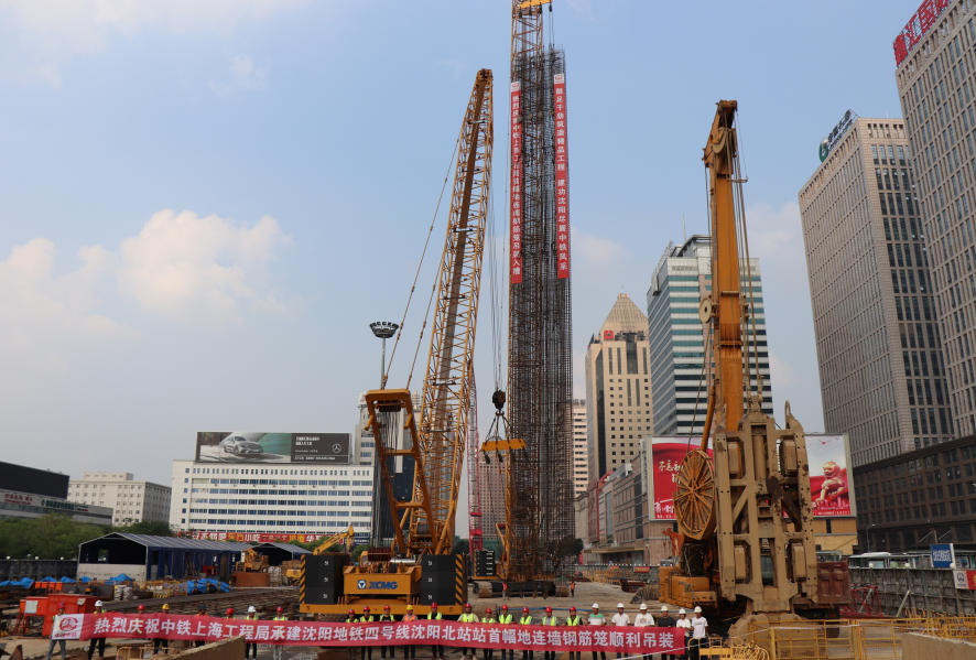 8月23日,由公司承建的沈陽地鐵4號線七(1)標項目沈陽北站站地連墻首幅鋼筋籠成功吊裝。沈陽北站站位于北站路與友好街交匯路口東側(cè),沿北站路東西向敷設,與既有二號線沈陽北站站換乘,換乘通道為雙連拱暗挖結(jié)構(gòu)。此次吊裝的鋼筋籠幅長5.3米,厚度1.2米 ,全長48.5米。該項目周邊環(huán)境復雜、主體基坑深、施工難度大、技術(shù)含量高,是沈陽地鐵四號線的關(guān)鍵性節(jié)點工程,也是沈陽地鐵難度最大的工程之一。針對如何將鋼筋籠在超深地下連續(xù)墻施工中起吊和下注,技術(shù)人員經(jīng)過嚴格檢算、縝密分析和多次研討論證,最終以300噸履帶吊作為主吊,150噸履帶吊作為輔吊的24吊點整體吊裝方案,確保了60噸鋼筋籠安全吊裝。針對工程施工工序交叉、周邊環(huán)境復雜等難題,項目部引入BIM技術(shù)進行4D建模,對50米深地連墻起重吊裝等危大工程施工進行模擬,在摸清熟悉施工方案的優(yōu)缺點的基礎上,進一步優(yōu)化了施工方案。