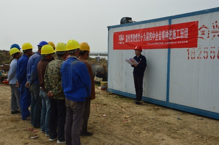117日,潁上項目黨支部組織進工區、進班組活動宣貫黨的十九屆四中全會精神潁上水廠項目分為三個施工區,相互距離較遠,且處于施工任務攻堅的關鍵階段,為使黨的十九屆四中全會精神及時宣貫到項目的每名黨員干部、施工一線工人,落實黨的基層組織建設,黨支部決定開展宣貫進工區、進班組活動。每到一處宣貫現場,項目書記向大家宣講會議召開背景、全會提出的總體目標、工作要求等內容,并結合專家解讀重申重點內容,要求黨員干部統一思想和行動,以強烈的思想自覺、政治自覺和行動自覺,攻堅克難、銳意進取,為加快推進項目施工建設,力保通水目標實現而努力奮斗。結合項目建設存在的問題和面臨的困難,項目書記對項目下步工作做出以下部署:一是聚焦思想,項目部全體員工要認真貫徹落實會議精神,以精神促思想,以思想保建設。二是充分發揮黨員模范示范作用、黨支部戰斗堡壘作用,黨員干部要找差距、抓落實,解決項目的難點熱點問題,力保節點目標完成。三是嚴格制度落實,提升項目建設,確保 “職工小家”建設有內涵,員工有獲得感、幸福感、榮譽感。(楊巧巧)