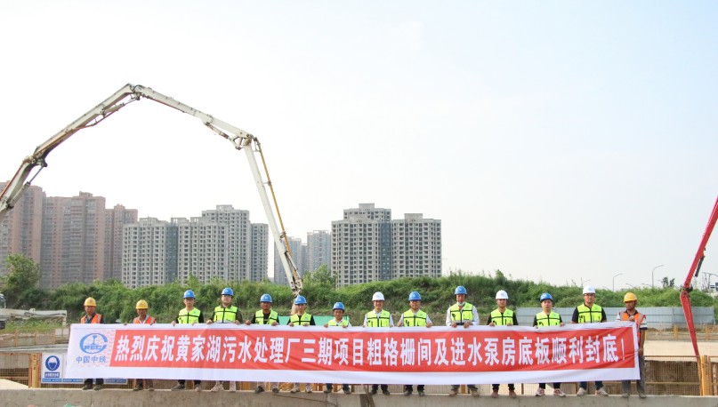 武漢黃家湖污水處理廠三期擴建工程項目粗格柵間及進水泵房底板順利封底