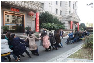 此次文體活動(dòng)包括蘿卜蹲、自行車慢騎、夾玻璃球、投飛鏢、拔河等比賽內(nèi)容,多項(xiàng)活動(dòng)同時(shí)在一樓展開角逐,熱鬧非凡。這邊夾玻璃球、投飛鏢的吶喊聲此起彼伏,那邊自行車慢騎的歡呼聲激情澎湃,最受青睞的要數(shù)考驗(yàn)反應(yīng)速度的蘿卜蹲游戲。最后開展的拔河比賽幾乎是全員參與,男女雙方拉開陣勢(shì)對(duì)拔,參賽隊(duì)員們卯足了勁,手拉麻繩,腳釘大地,大家一齊發(fā)力,寸步不讓。比賽勢(shì)均力敵,需要經(jīng)過長(zhǎng)時(shí)間的激烈拉鋸戰(zhàn)才能結(jié)束。整個(gè)賽場(chǎng)加油聲、歡笑聲此起彼伏,熱鬧非凡。活動(dòng)最終在歡樂、團(tuán)結(jié)的氣氛中落下了帷幕?;顒?dòng)結(jié)束,大家神采奕奕、精神抖擻地投入到各自崗位。一系列文體活動(dòng)的開展,達(dá)到了既慶祝元旦、喜迎新年,又愉悅職工身心、增進(jìn)團(tuán)結(jié)協(xié)作,充分展示了機(jī)關(guān)員工昂揚(yáng)向上的精神面貌。