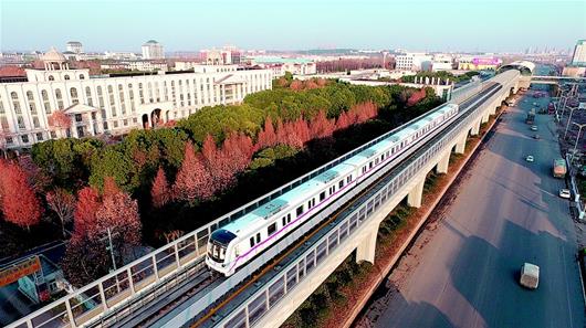 湖北日?qǐng)?bào)訊 圖為:開往新洲陽邏的軌道交通陽邏線。(湖北日?qǐng)?bào)全媒記者 陳勇 攝)