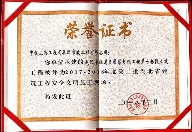 日前,從湖北省建設(shè)工程質(zhì)量安全協(xié)會(huì)傳來喜訊,中鐵上海工程局集團(tuán)市政公司承建的武漢市軌道交通蔡甸線工程第七標(biāo)段土建工程榮獲“湖北省建筑工程安全文明施工現(xiàn)場(chǎng)”榮譽(yù)稱號(hào)。