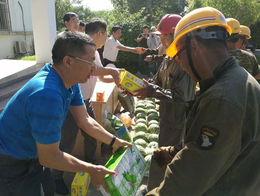 在關愛農民工送清涼活動現場,顏佳東和劉建軍一行將涼茶、白糖、綠豆、西瓜等消暑物資一一送到農民工的手上,農民工們表達感謝之余,紛紛表示在安全生產的同時一定會盡全力加快項目的建設,確保完成6月30日工程順利通水目標。