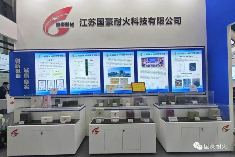 國(guó)豪耐火展位T15,位于展會(huì)現(xiàn)場(chǎng)中心位置。此次展會(huì),國(guó)豪耐火展示了危(固)廢焚燒耐火材料、高溫耐火材料及RH精煉爐無(wú)鉻耐火材料。