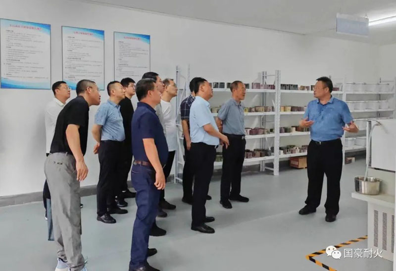 周建國董事長代表公司對左云縣人大常委會何長青主任一行蒞臨國豪耐火考察調研表示歡迎。隨后,考察團一行參觀了江蘇國豪耐火科技有限公司生產車間、能源化工用耐火材料工程技術中心(與武科大共建)、研究中心展示廳、中試車間及實驗室。周建國董事長向何主任一行介紹了公司發展歷程、業務領域、技術創新、經典案例及研究中心概況和功能,匯報了公司在人才集聚、科技創新及智能化綠色發展等方面的工作業績。