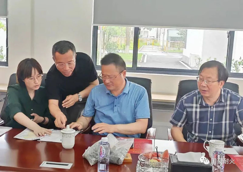 7月4日下午,左云縣人大常委會何長青主任等一行在宜興市人大常委會黨組副書記、副主任何曉進、宜興市人大常委會財經工委主任嚴旭峰、宜興市人大常委會辦公室預算監督科副科長黃佳慶及丁蜀鎮相關部門領導的陪同下蒞臨江蘇國豪耐火科技有限公司,進行參觀考察并座談交流。江蘇國豪耐火科技有限公司董事長周建國、副總經理周知瑜熱情接待。